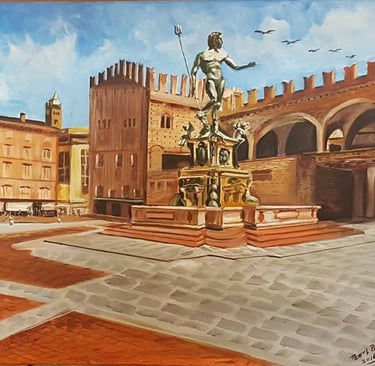 "The Neptune of Bologna City" was my other. The distinctive artwork of Bologna City was produced decades ago by Italian artists. It was given life on the canvas or art frame of my painting.